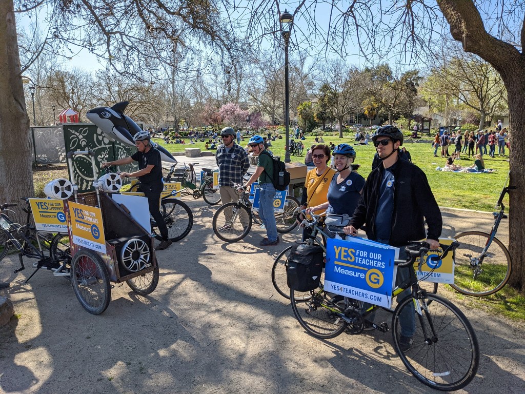 OrgCom’s first Chairperson Brian Bennett led several very successful events to pressure DJUSD BOE into a three-year contract with considerable improvements in compensation and working conditions. OrgCom generated multiple DTA site leaders to run many successful informational and political rallies. In 2020, OrgCom, under the leadership of Ken McKim, while working with a community organization including two Board of Education trustees, ran a successful DTA campaign to pass Measure G to secure a “no sunset” parcel tax to significantly increase teacher and staff compensation – allowing DJUSD to retain and attract teachers and staff despite teacher shortages.